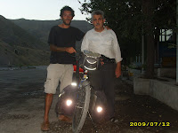 Al final tube que continuar camino solo, como habia empezado. Las cosas se torcieron para Jorge y Naranjito y, tubo que cambiar de pais, tranquilo que el mundo es mas pequeno de lo creia y, seguramente nos volvamos a ver en el. Cambiando de tema, la entrada en Iran no ha sido nada dificil, en 15 minutos ya estaba en Iran. De donde es usted?, de spain, barcelona, me dijo toda la alineacion de futbol, me sello el pasaporte y, ya esta. La idea que tenia yo de Iran, en referencia al camino que me iba a encontrar, era equivocada, creia, que iba a ser montanoso, pues no!!, es llano pero hay mucha montana alrededor de la carretera que va desde Maku a Teheran. Lo que si que es es muy desertico. A mediada que me iba acercanco mas hacia el sur, el calor era mucho mas sofocante, a ciertas horas es imposible continuar, el agua fresca se convierte en caldo en 5 minutos, La Txata enpieza a subir de temperatura, hasta llegar al punto de que parece que esta febril jajajaja. Ademas ahi que sumarle a todo esto, el viento que hace, que por cierto me tiro de la Txata un par de veces (o fue la Txata para desacerse de mi). A mi llegada a teheran me puse en contacto con el equipo de apollo, Trico & Lorena & Don Julian & La Porota, por suerte, ellos estaban alogados en una casa de una familia de Teheranos jajajaja, como no iba a ser de otra manera me adoctaron. Es una familia increible y muy amplia (Hassan - Ladan - Hamid Reza- Ali Reza - Shadi - Lobat - Varesh - Abbas - Sasan) en resumidas cuentas la familia ATTARIAN, que se dice pronto jajaja, es un hotel familiar, desayuno comida cena e internet, todo esto gratuito. Para continuar camino tengo que sacarme los visados de Pakistan e India. Aqui es donde se me empezaron a cerrar las puertas, el consulado de spain me comenta que no estan bien las cosas para entrar en Pakistan y, que tampoco me iban a hacer ninguna carta de recomendacion para Pakistan. Para que me darian la de India tube que firmar un papel donde decia que no iba a ir a Pakistan, si no, no me la daban. Llegados a esta situcion y, viendo todas las posiblidades que tenia, he decidido ir en avion. Podria ir por Turkmenistan, Uzbekistan, Taikistan, China e India, pero me pasa lo de siempre, practicamente no tengo dinero y, me interesa es llegar a India haber si vendo unas pulseras, collares etc alos turistas, pondre la bici cerca, de reclamo (Me an ensenado a hacer este tipo de cosas) Solo me falta el perro flauta jajajaja. La familia Attarian se marcha de vacaciones y, como no podia ser de otro manera, tambien nos an invitado a irnos de con ellos de vacaciones. Lo que si que hemos echo es buscar otro lugar de acogida, una estudiante de espanol es la que nos cede parte de su casa, la familia Attarian al completa nos a acompanado hasta la nueva casa y, nos lleva todos los bartulos, hasta la otra parte de la ciudad (Una hora mas o menos de viaje). Tras presentarnos y subir todos los bartulos, aparece el propietario de la casa, ya que se la tenia alquilada. Nos comenta que no podemos quedarnos por el perro, que es impuro y no puede rezar, todo esto a las 12:30 de la noche, despues de habernos despedido de la familia Attarian, haber cruzado toda la ciudad con todos los bartulos etc etc. La chica que nos habia invitado no sabia donde meterse, la familia Attarian no queria marcharse hasta que solucionaramos todo y, no se soluciono nada de nada. Llegados a este punto los animos empezaron a decaer hasta el punto de que por rabia he impotencia se echaron unas lagrimas. Mas que nada por que la familia Attarian lo habia dado todo por nosotros, se iban a marchar de vacaciones y ahora tras lo sucedido no querian irse. Volvimos otra vez a la casa de la familia Attarian. Todos ellos estaban abergonzados por el comportamiento de un energumeno religioso. Yo, no hubiera echo ni la mitad de lo que a echo la familia de Attarian, pero tras ver esto y sentir esa gratitud, bondad, sonrisas y buenas palabras. Me planteo tener por lo menos la mitad de buena voluntad que tienen esta gente, con eso me conformo. Ya lo he comentado alguna vez esto, esto es una cadena de favores, como la pelicula, pero sin el cara quemada ni la macizorra jajaja. Tambien quiero poner unas fotos de la realidad, de lo que esta aqui ocurriendo, no quieren saber nada del islam. Todo lo que pasa por la politica tiene que dar el visto bueno los religioso . ESA REVOLUCION VERDE, fuego a tooooooo. Tambien agradecer a Atousa, por todo la ayuda prestada, gracias.